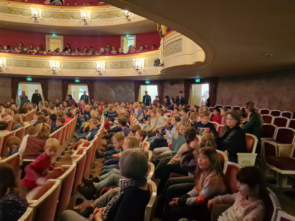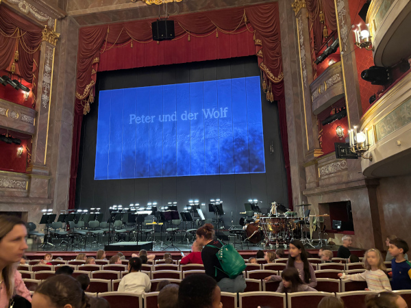 Im Theater angekommen, waren die Schülerinnen und Schüler sofort von der besonderen Atmosphäre beeindruckt. Die bekannte Geschichte von Peter und der Wolf wurde mit Musik, Schauspiel und viel Ausdruck lebendig erzählt. Besonders fasziniert waren die Kinder davon, wie die verschiedenen Instrumente die einzelnen Figuren darstellten. Mit großer Aufmerksamkeit und Begeisterung verfolgten sie die Aufführung.